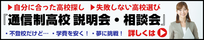 『通信制高校説明会・相談会』は、当校の説明ではなく、通信制高校全体の説明会です。これから高校を探す方、志望校は決まっているが他校のことも確認したい方に最適です。